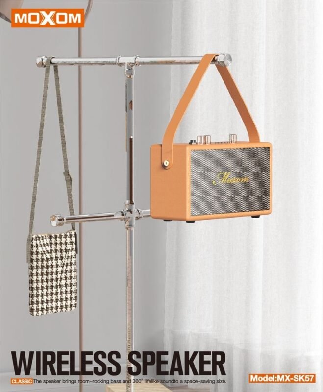 Ajoutez une touche d'élégance classique à votre espace avec l'enceinte sans fil MOXOM MX-SK57. Inspirée du design des amplis et des radios vintage, cette enceinte combine une esthétique rétro premium avec les dernières technologies audio. Ce n'est pas seulement une enceinte, c'est une pièce de décoration qui embellit votre intérieur et le remplit de vos mélodies préférées.