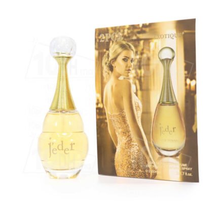 Le parfum Dior J'adore original est une eau de parfum florale et solaire, symbole de féminité et de luxe, et son prix peut varier considérablement selon le format et le détaillant. Le coffret "Super Love" en image semble être un ensemble de deux bouteilles de 50 ml chacune. Des parfums similaires de la marque J'rade peuvent être trouvés à un prix plus abordable que l'original