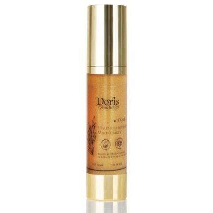 Découvrez l’éclat doré et la douceur satinée avec l’Huile Sèche Pailletée Doris! 🌟✨