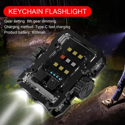 🔦 Lampe Porte-Clés Multifonction 800 Lumens – Compacte, Puissante, et Ludique !