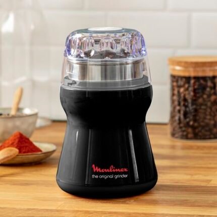 Avec le Moulin à Café Moulinex AR110, vous pouvez savourer des arômes frais et intenses de votre café ou de vos épices, tout en profitant d'un appareil pratique et design pour votre cuisine.