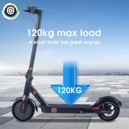 Trottinette Électrique KEPOW E9PRO06S - Puissance moteur: sans balais 350 Watts - 2 modes de vitesse -Vitesse maximum : 25 km/h - Capacité nominale de batterie: 36 V/ 6 Ah - Temps de charge: 4 à 5 heures - batterie au lithium - Autonomie batterie: 20 à 30 km (dépend de la capacité de la batterie, du poids de l'utilisateur et de l'état de la route, etc.) - Chargeur : 42 V/1,5 A - Prise de Chargeur: Norme Européenne - Charge maximale: 120 kg - pneu plein en nid d'abeille – Honeycomb - Frein électrique + système de frein à disque arrière Affichage - Phare avant à LED + feu stop arrière - Pliable - Fonction régulateur de vitesse – Cruise Control Avec Suspension Avant, AMORTISSEUR et Clignotants - Matériau: alliage d'aluminium - Capacité d’escalade : 15 degrés - Taille de roue: 8,5 pouces - Couleur: Noir - Garantie : 3 mois (sur batterie et chargeur).