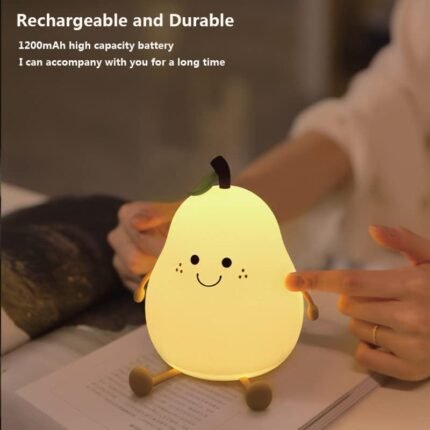 - Mignon Sourire Ampoule Silicone Veilleuse : la décoration de veilleuse en forme de poire est deux en un, avec une forme mignonne et une correspondance des couleurs fraîches. Ce n'est pas seulement une petite veilleuse, mais aussi une décoration créative. Dimensions : 13,2 x 11 x 15,2 cm.