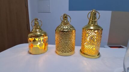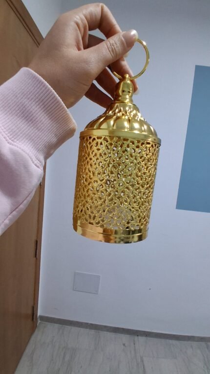 Cette élégante lanterne de Ramadan en métal doré se distingue par ses motifs ajourés raffinés qui laissent passer une lumière douce et chaleureuse. Son design oriental apporte une touche festive et spirituelle à votre décoration intérieure. Facile à suspendre ou à poser, elle est parfaite pour illuminer vos soirées de Ramadan, décorer une table, un salon ou un coin prière avec élégance.