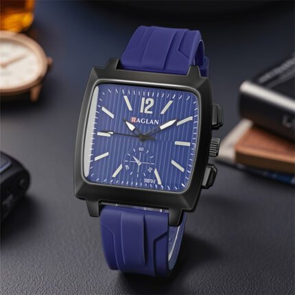 - Design : Elle présente un boîtier de forme carrée ou rectangulaire avec des bords arrondis, et un cadran noir texturé.