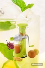- Conception : Le dispositif est de couleur vert citron et blanc, avec un design simple et portable. Il est équipé d’un filtre et d’un séparateur de pulpe intégrés pour un jus lisse et sans pulpe.