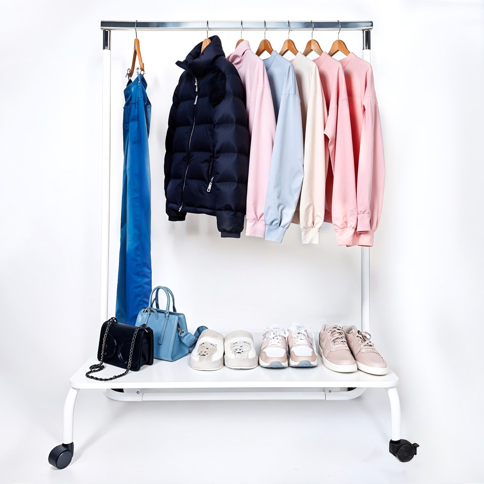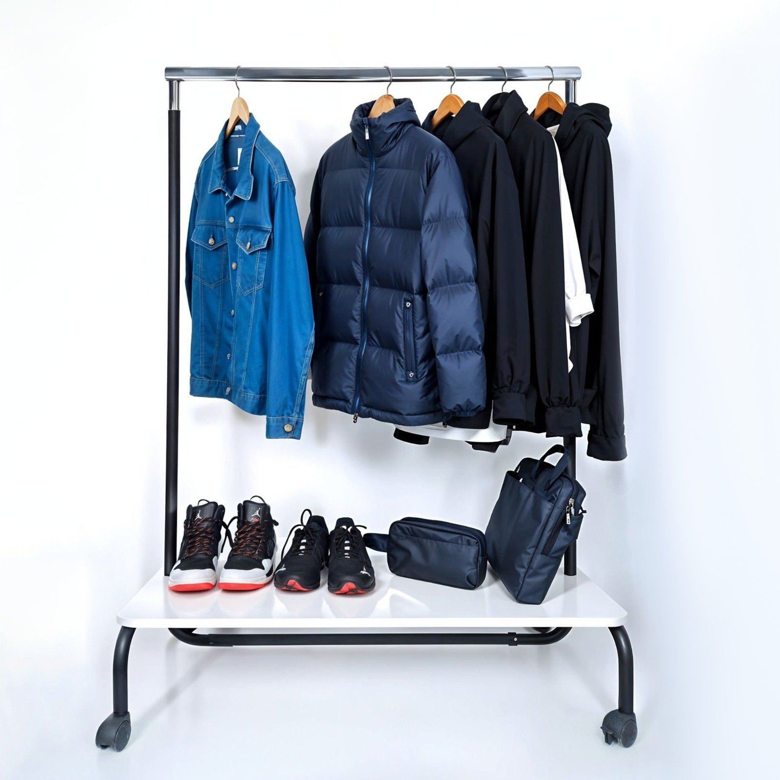 Apportez organisation et style à votre entrée avec ce support 2-en-1 : rangez vos manteaux, vestes et chaussures en un seul endroit, avec praticité, robustesse et design moderne.