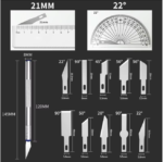 Ensemble de 13 couteaux de précision livré avec 3 couteaux d’artisanat, 10 lames dont une lame à buriner, une lame à bord de pochoir, une lame à pointe fine et plus encore, pour pouvoir gérer des projets détaillés comme un jeu d’enfant impliquant une coupe de précision, une coupe, un burinage, un ébavurage, un marquage, un taillage, une sculpture, un grattage, etc. Les lames de recharge en acier au carbone trempé sont durables et résistantes à la rouille et peuvent vous aider à réaliser des projets difficiles, ainsi qu’une trousse à outils professionnelle pour artiste, architecte, graphiste, amateur et modéliste. La poignée texturée des poignées réduit la fatigue et ajoute une adhérence et une stabilité accrues. Les bons couteaux et lames artisanaux rendront vos projets plus faciles, plus sûrs et plus agréables. Changement de lame tranchante en 5 secondes ou moins