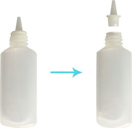 • Dévissez le flacon de remplissage fourni et retirez la partie supérieure en tirant dessus.