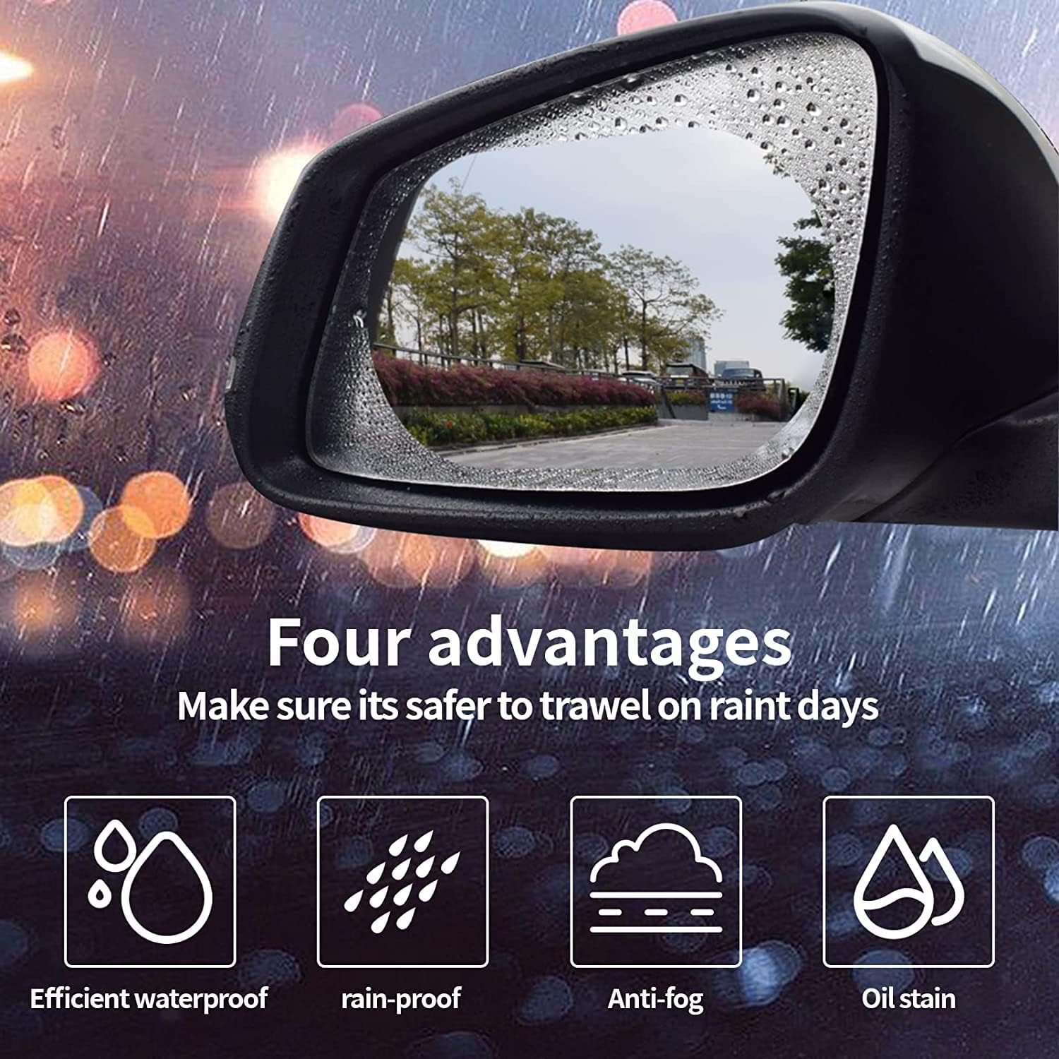 Car rearview mirror protective membrane is rainproof, anti-fog, anti-glare, anti-mist, anti-scratch, and waterproof providing clearer sight and better view on a rainy or foggy day.