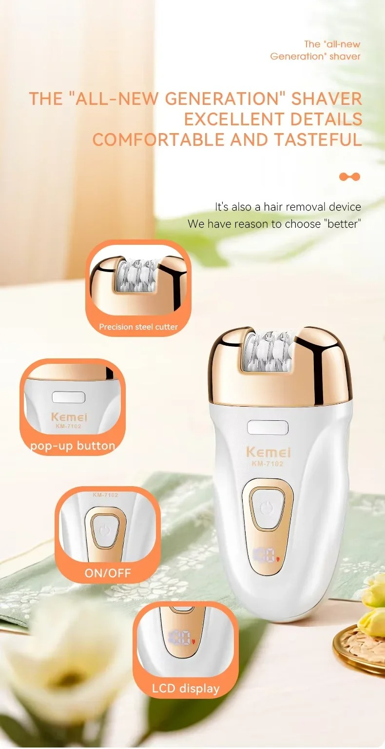 Ce rasoir sans fil est parfait pour tous les besoins de soins personnels des femmes, offrant des fonctions complètes d’épilation et de rasage pour un résultat impeccable.