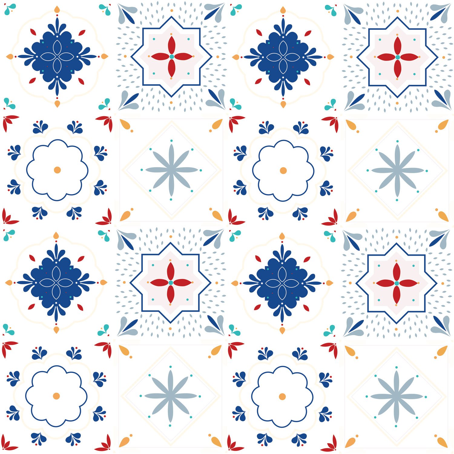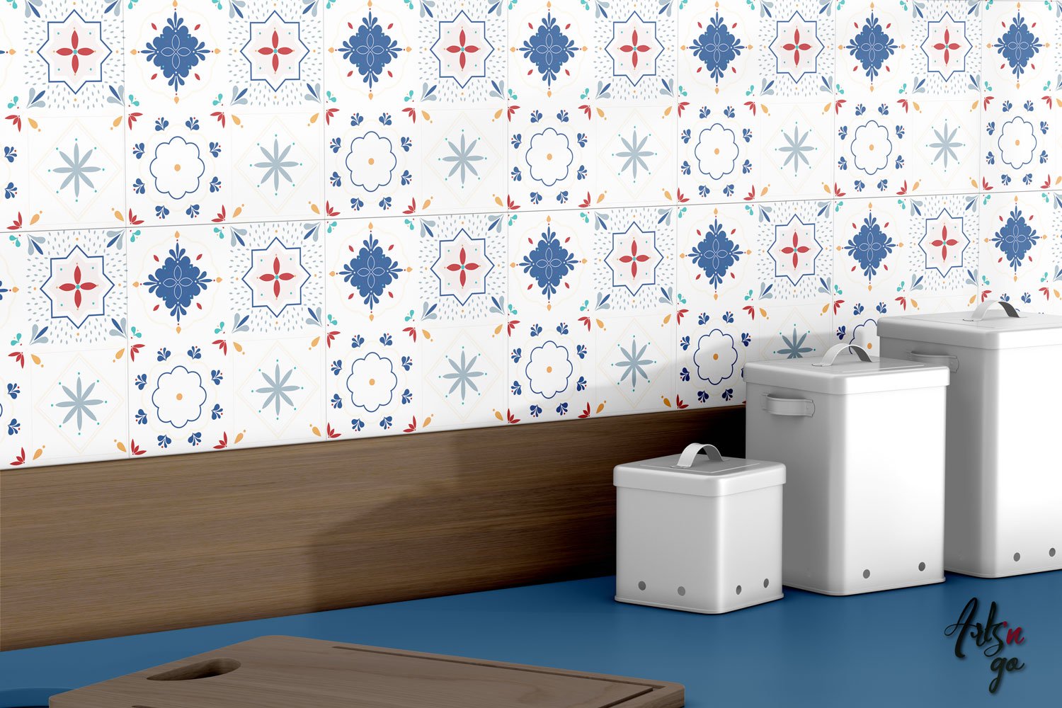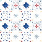 Ces stickers muraux carrelages se composent de bleu, rouge, et de plusieurs autres couleurs.