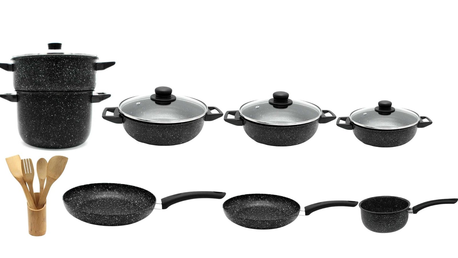Batterie de Cuisine Complète 17 Pièces – Revêtement Granite Noir