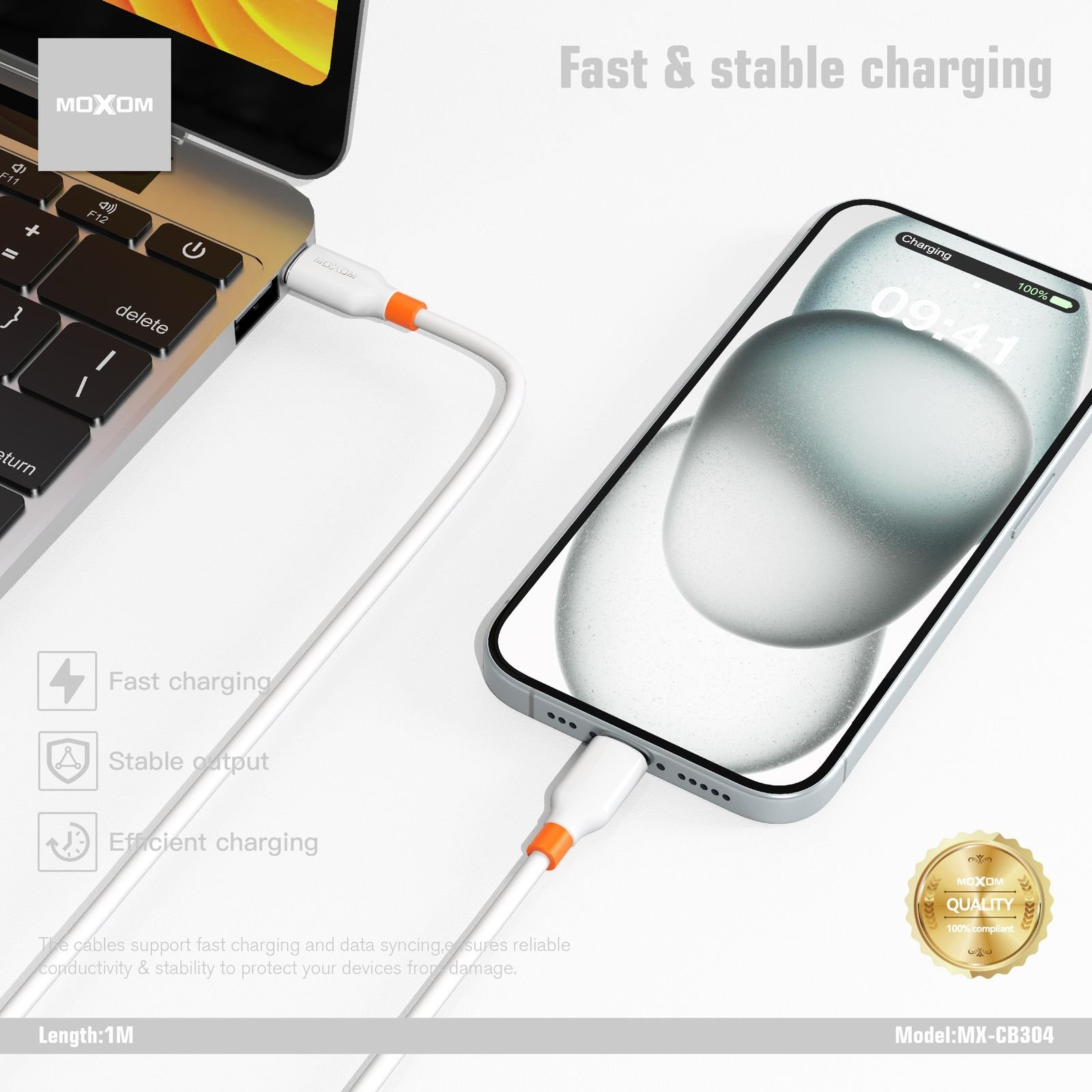 Ne faites aucun compromis entre la puissance et la flexibilité. Le câble MOXOM MX-CB304 vous offre le meilleur des deux mondes : une puissance de charge massive de 60W capable d’alimenter votre ordinateur portable, avec la durabilité et la souplesse exceptionnelles du matériau TPE de haute qualité. C’est le seul câble dont vous avez besoin pour tous vos appareils modernes en Type-C.
