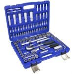 Caisse à outils bleu de 108 pièces, de marque Scheffler Germany, composé de: 30 Douilles courtes pour clé à pipe: 1/4″: 4,4.5,5,5.5,6,7,8,9,10,11,12,13,14mm 1/2″: 10,11,12,1