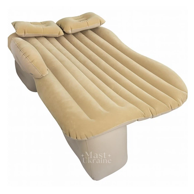 The most popular and most demanded matttress model, rapidly and easily converting the back seat of the car to a fairly convenient place of rest, is a two-seat item composed of the upper horizontal section, which, when injecting the air, forms a flat bedroom seat of size: 87 z92 cm wide, a length of 135 cc-145 cm. The outer surface has an artificial coating under the veil with an anti-sliding effect. A special lower part which, when pumped, fills the space between the rear seat and the front seat backs.