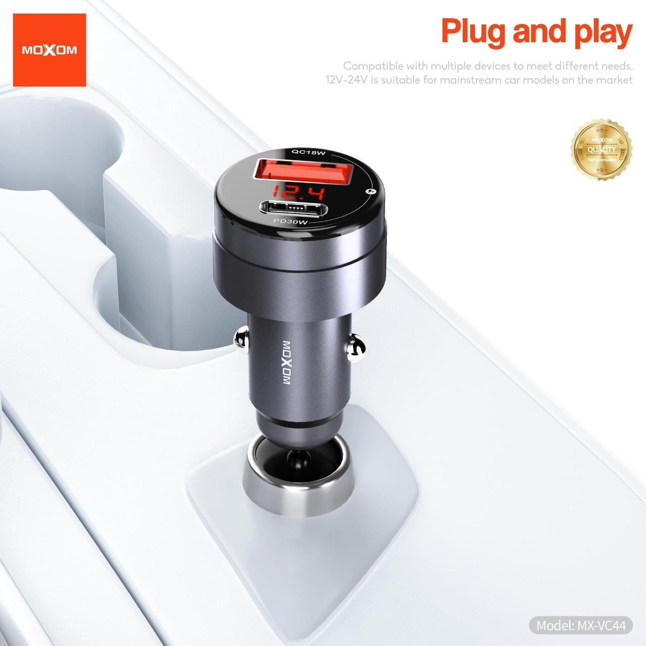 Chargeur de Voiture Rapide à Double Port avec Ecran intelligent MOXOM MX-VC44