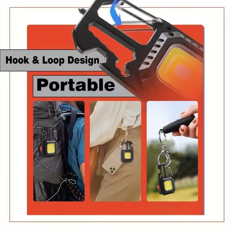 - Compacte et portable, elle peut être utilisée comme lampe de travail, lampe de camping ou porte-clés.