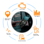 • Lire les codes de diagnostic des problèmes, qu’ils soient génériques ou spécifiques au fabricant, et affichez leur signification (plus de 3000 définitions de code générique dans la base de données).
