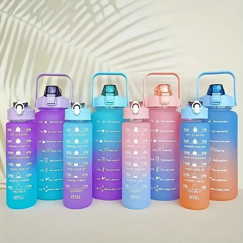 Bouteille d’eau Bouteille de boisson motivante Bouteille d’eau de sport avec marqueur de temps Portable Gobelets en plastique réutilisables Gym de voyage en plein air