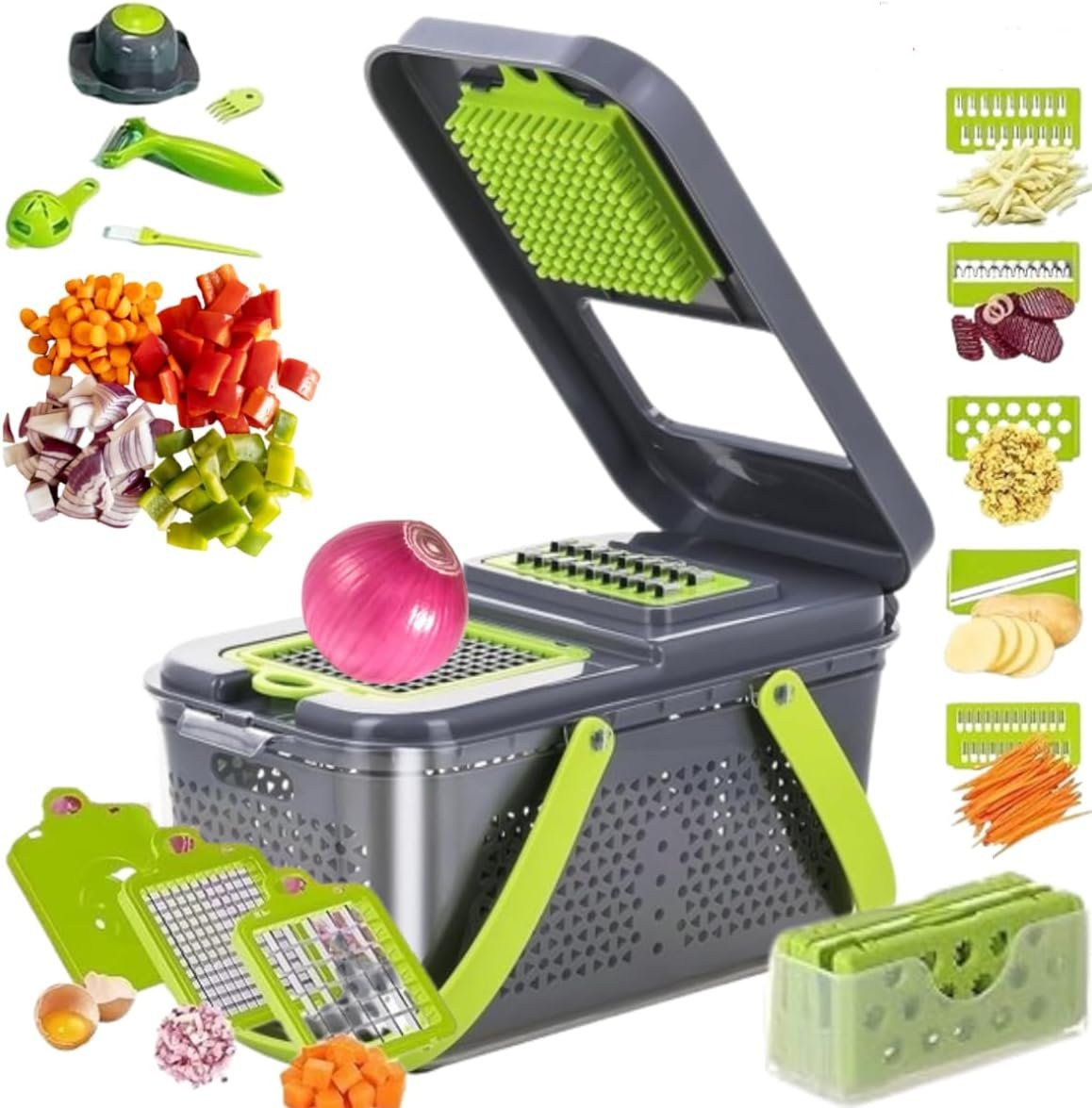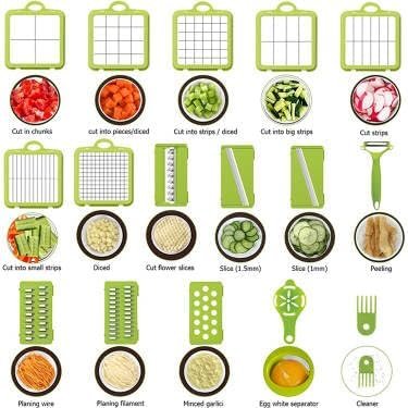 • Versatile 22-in-1 Functionality: This vegetable chopper handles various cutting tasks, including onion chopping, dicing, slicing, and more.