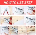 • ☾【Facile à utiliser】 Installez d’abord la boucle femelle et femelle sur l’extrémité saillante de la pince, placez simplement le matériau à perforer au milieu, puis alignez les cinq griffes et appuyez dans le trou.