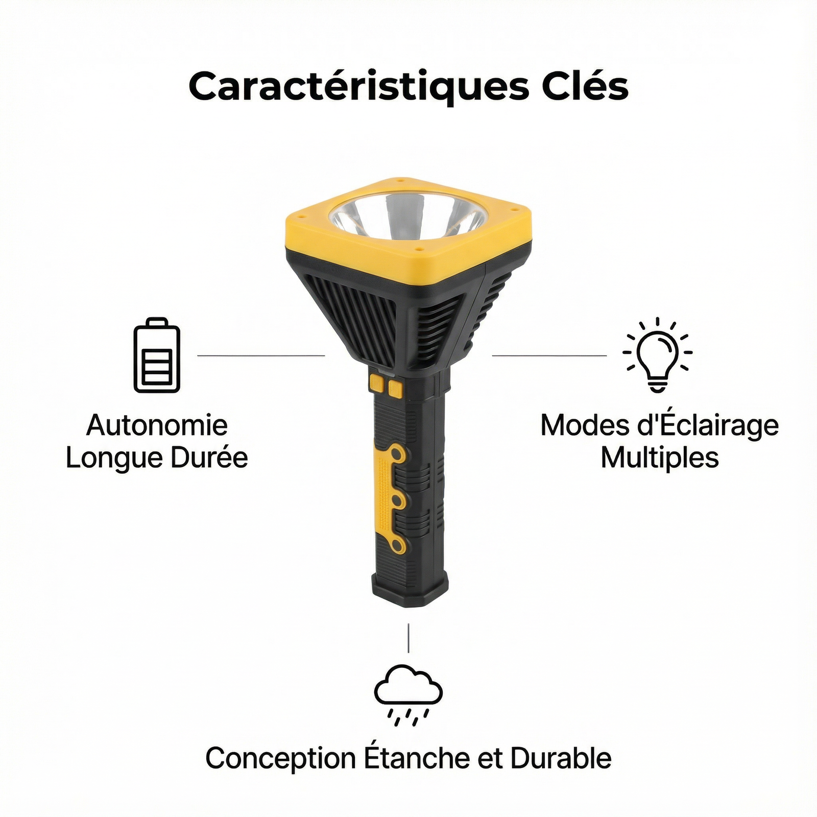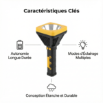 Conception étanche à l’eau et à la poussière, idéale pour une utilisation en extérieur.