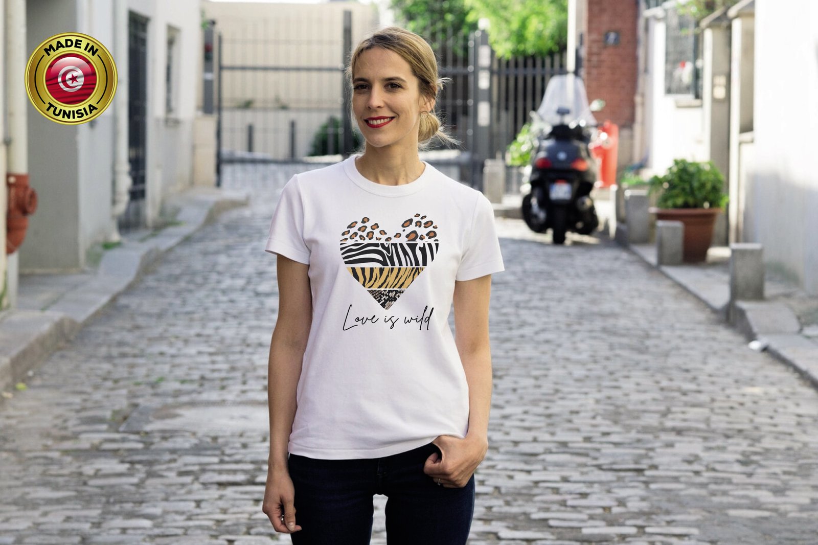 Ajoutez une touche d’originalité à votre garde-robe avec notre t-shirt blanc “LOVE IS WILD”. Fabriqué en coton biologique ultra-doux, il présente un design élégant et intemporel qui sublime toutes vos tenues, du casual au chic.