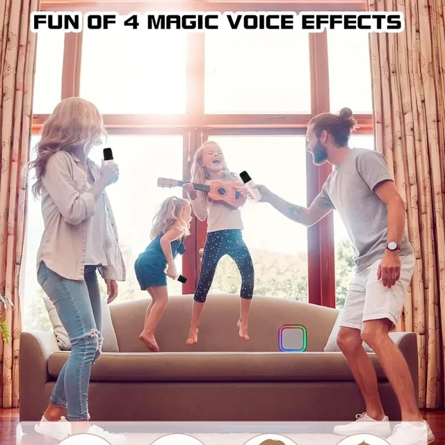 Amusez vous avec 5 effets vocaux magiques, incluant les voix monstre, bébé, femme, homme, et originale/accompagnement. Ces effets ajoutent une touche de fun et permettent aux enfants comme aux adultes d’explorer différents tons de voix pendant qu’ils chantent. La machine est également équipée de lumières LED disco colorées qui battent au rythme de la musique, créant une ambiance festive et divertissante. Les lumières sont contrôlables indépendamment pour ajuster l’atmosphère selon vos envies. 💡🎵