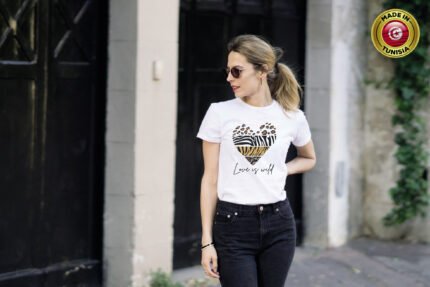Ajoutez une touche d’originalité à votre garde-robe avec notre t-shirt blanc "LOVE IS WILD". Fabriqué en coton biologique ultra-doux, il présente un design élégant et intemporel qui sublime toutes vos tenues, du casual au chic.