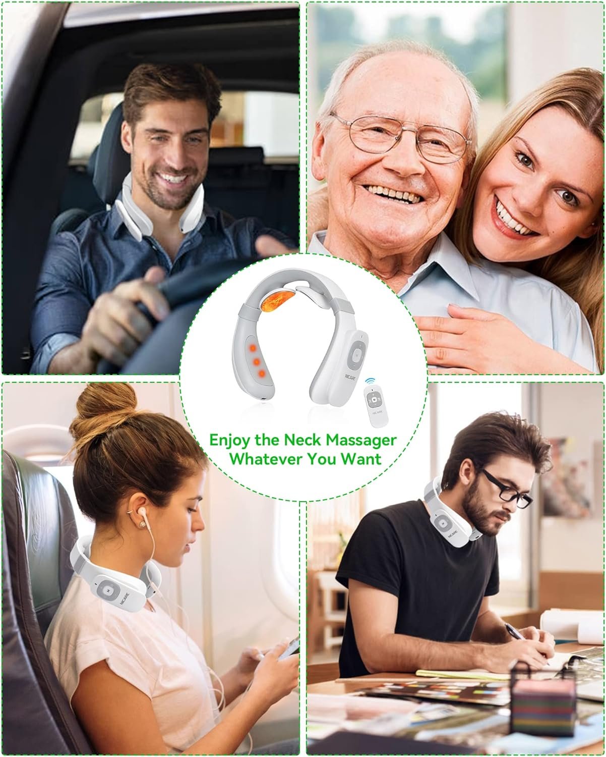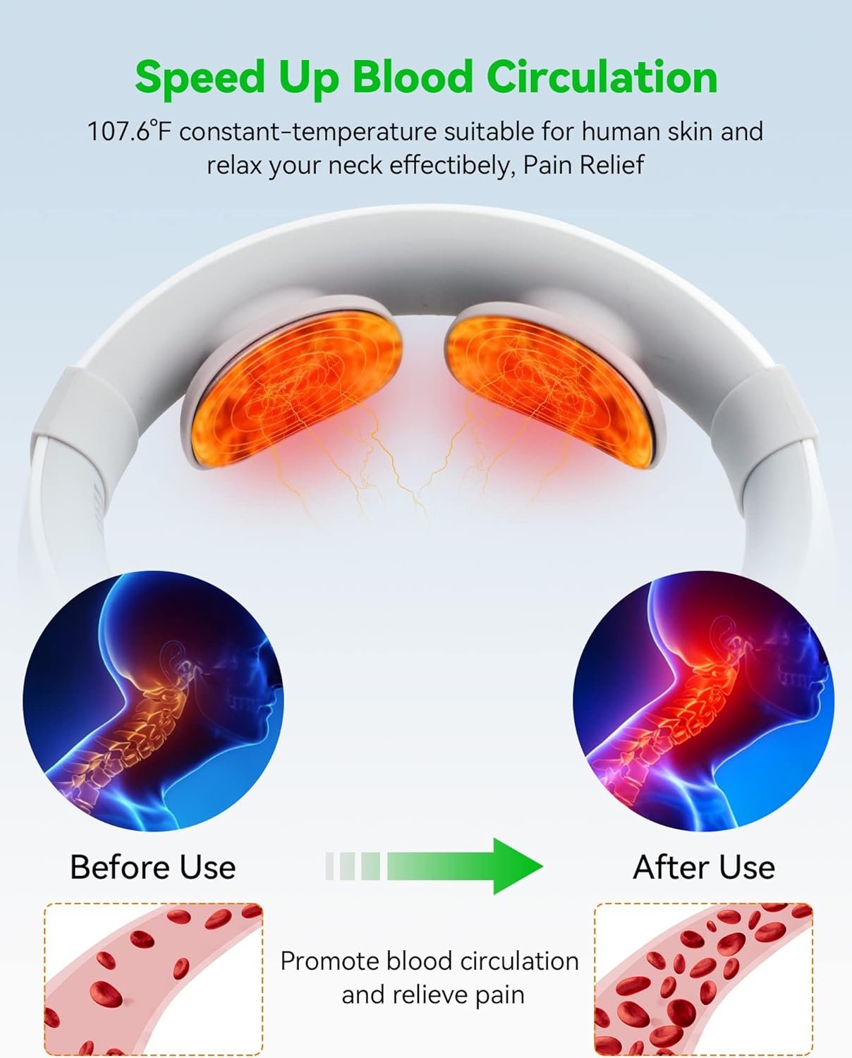 • Design chauffant : 6 points de chauffage à température constante, tout comme pour donner à votre cou une compression chaude, non seulement simuler une véritable expérience de massage confortable, mais également accélérer la circulation sanguine du cou et améliorer l’effet de massage.