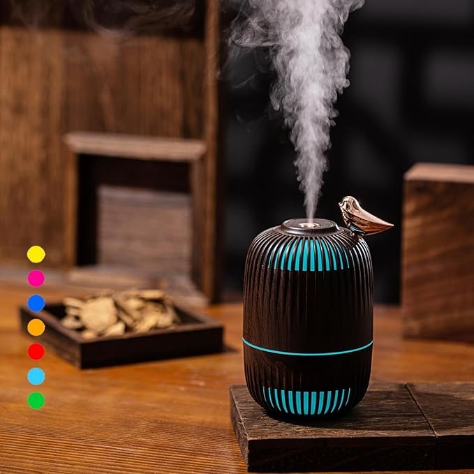 - Design Élégant : Le diffuseur présente une finition imitation bois avec un charmant oiseau doré perché sur le dessus, ajoutant une touche artistique et organique à votre décor.