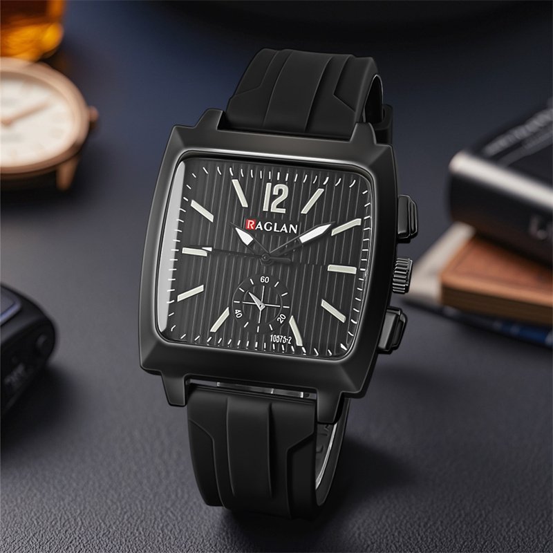 - Design : Elle présente un boîtier de forme carrée ou rectangulaire avec des bords arrondis, et un cadran noir texturé.