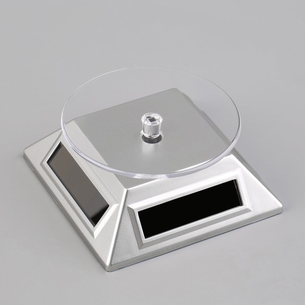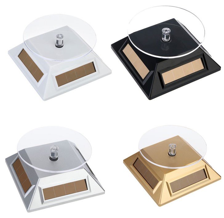 Présentoir rotatif solaire & batterie – plateau tournant pour montres, bijoux et objets