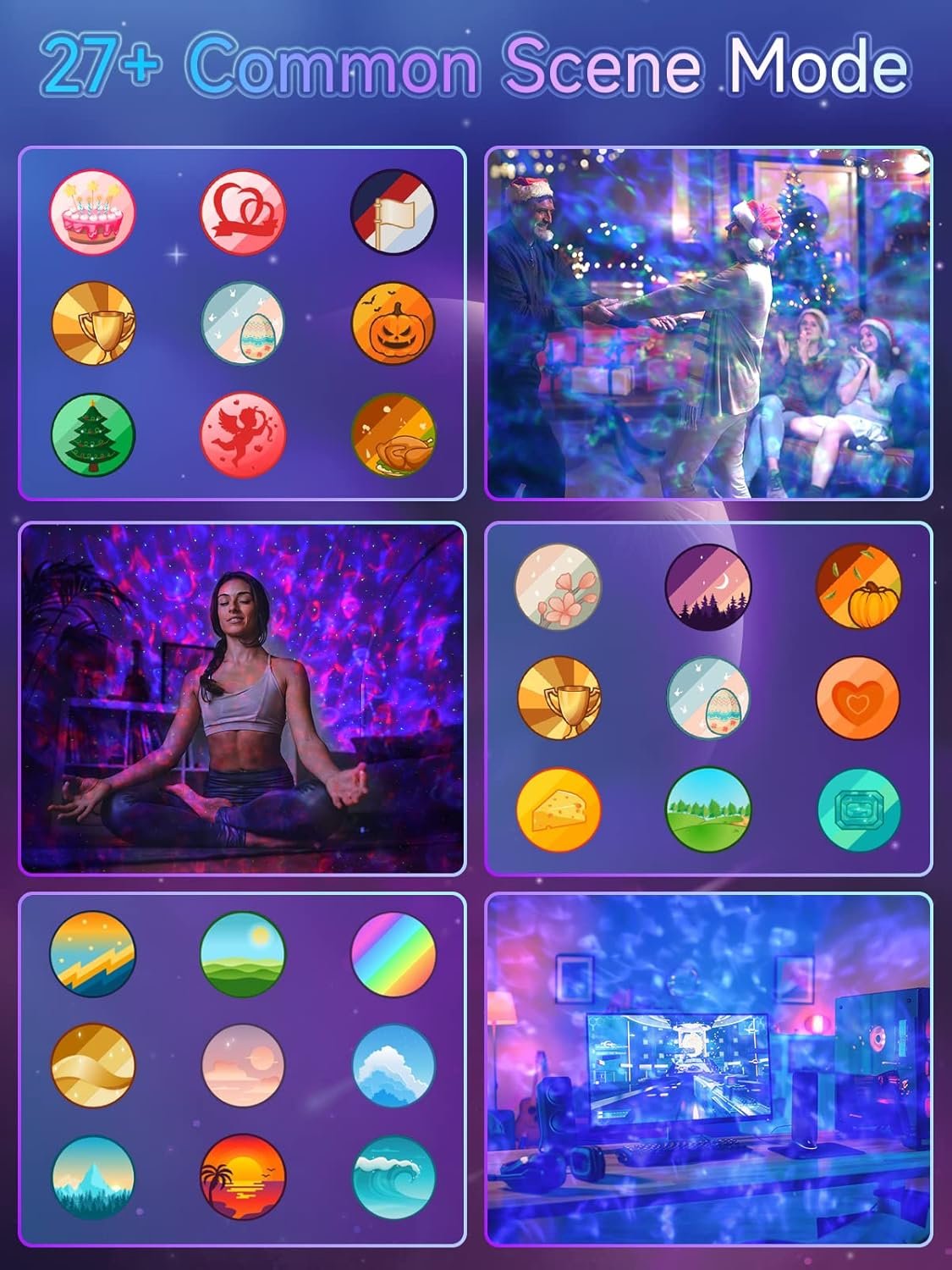 - Parfait pour la décoration intérieure, tels que les projecteurs des ondes de mer, les lumières de la fête sur scène, les lumières stroboscopiques, les lumières d’humeur romantiques, les lumières nocturnes et les lampes de chevet pour créer une merveilleuse atmosphère ciel étoilée
