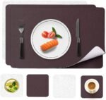 Facilité de Nettoyage : Ces sets de table en similicuir sont extrêmement faciles à nettoyer. Il suffit d’un chiffon humide ou d’une éponge avec un peu de détergent doux pour enlever facilement toute tache ou résidu alimentaire. Leur surface lisse et résistante ne absorbe pas les taches, garantissant qu’ils restent toujours impeccables et prêts pour une nouvelle utilisation.Antibactérien et Antimicrobien : Le similicuir de haute qualité utilisé pour ces sets de table est traité pour résister à la croissance de bactéries et de moisissures. Cela garantit qu’ils sont sûrs et hygiéniques pour une utilisation en cuisine ou sur la table à manger. Vous pouvez être sûr que votre famille et vos invités seront en sécurité tout en dégustant les repas servis sur ces sets de table.Isolation Thermique : Grâce à leur structure et au matériau en similicuir sur 1 face et feutré sur verso, ces sets de table offrent une excellente isolation thermique. Ils protègent la surface de la table de la chaleur et permettent de placer des casseroles et des poêles chaudes sans endommager la table en dessous. De cette manière, vous pouvez maintenir votre table en parfait état tout en servant des plats chauds.Style Élégant : Ces sets de table sont conçus avec un style élégant et raffiné. Leur finition en similicuir ajoute une touche de luxe et de sophistication à votre table, s’intégrant parfaitement à n’importe quelle décoration intérieure. Leur esthétique de classe fera certainement une bonne impression sur vos invités, rendant chaque occasion spéciale.Durabilité Exceptionnelle : Fabriqués avec des matériaux de haute qualité et une fabrication artisanale impeccable, ces sets de table en similicuir sont incroyablement durables. Ils sont conçus pour durer dans le temps, garantissant que vous pourrez profiter de leur beauté et de leur fonctionnalité pendant de nombreuses années à venir. Vous pouvez les utiliser sans vous soucier de l’usure ou de la détérioration, ce qui en fait un investissement intelligent pour votre décoration de table.