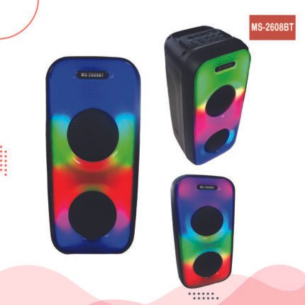 Le haut-parleur Bluetooth portable MS-2608 (ou MS-2608BT) est un appareil compact conçu pour une expérience audio et visuelle immersive, idéal pour une utilisation en extérieur ou dans de petits espaces intérieurs. Il se distingue par ses lumières LED colorées intégrées qui pulsent au rythme de la musique.