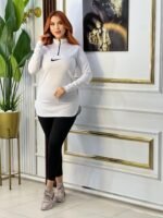 Découvrez ce magnifique ensemble sportif alliant confort et style. Le haut long à demi-fermeture éclair, longue pull en couleur rose ou blanc, s’associe parfaitement au legging noir ajusté. Conçu pour vos séances de sport ou vos sorties décontractées, il offre une allure moderne et élégante, complétée par des baskets tendance.