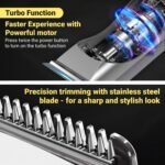 L’affichage LED intelligent sur la tondeuse et il fournit des informations claires sur la puissance restante et d’autres détails, assurant une recharge rapide sans vous soucier de manquer de courant inopinément pendant les coupes de cheveux.