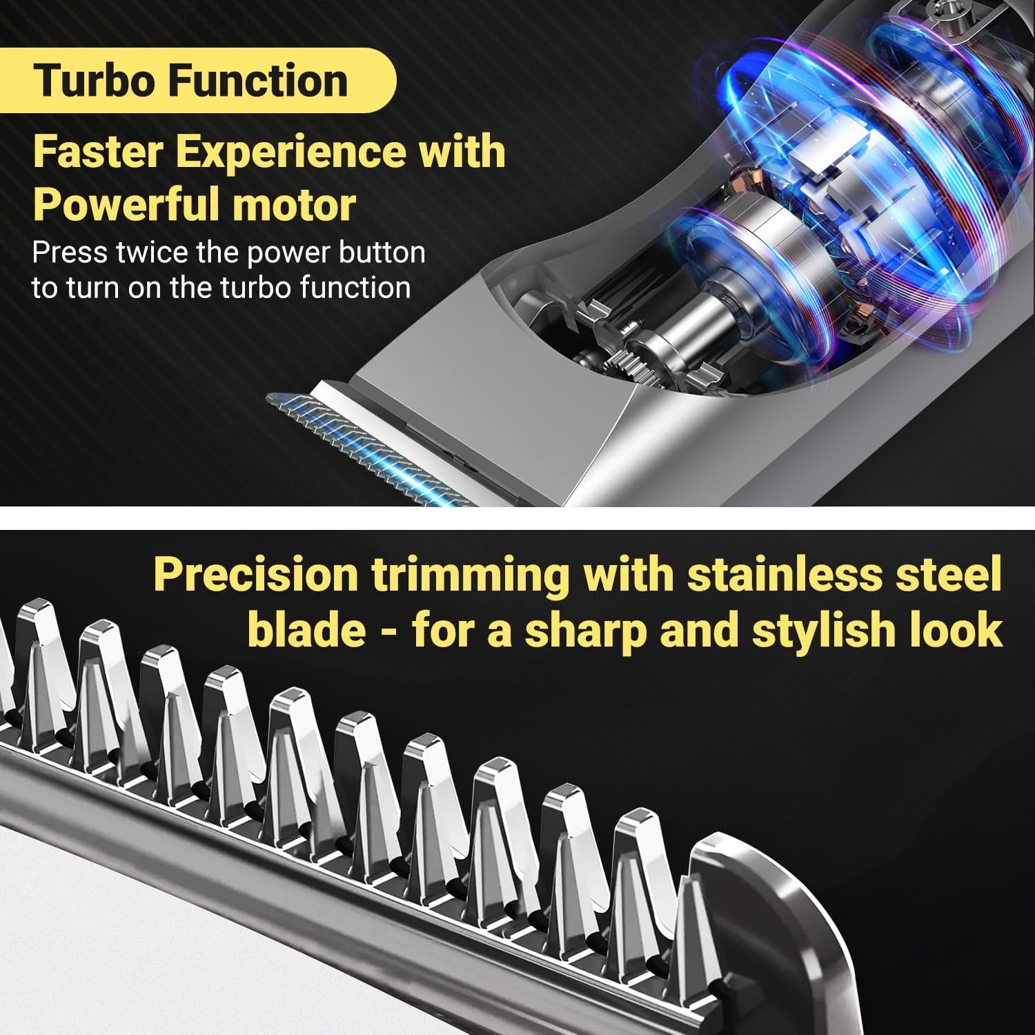 Equipée d’un nouveau moteur rotatif haute performance, la tondeuse électrique gère sans effort tous les types de cheveux avec un minimum de perturbation du bruit.