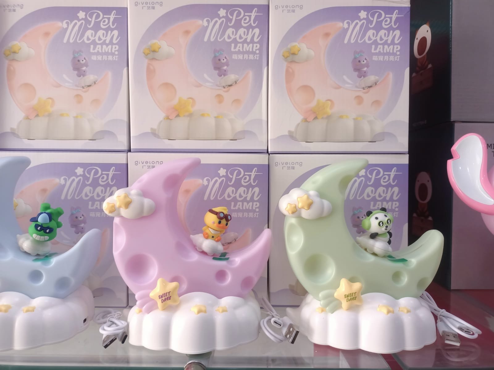 - Le texte sur l’emballage mentionne “Pet Moon LAMP” et “MINI CARTOON TABLE LAMP”, indiquant son usage et son style.